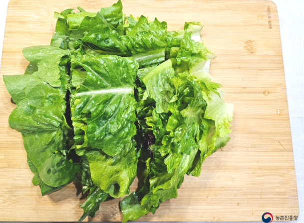 1. 상추 10장은 먹기 좋은 크기로 썰어줍니다.