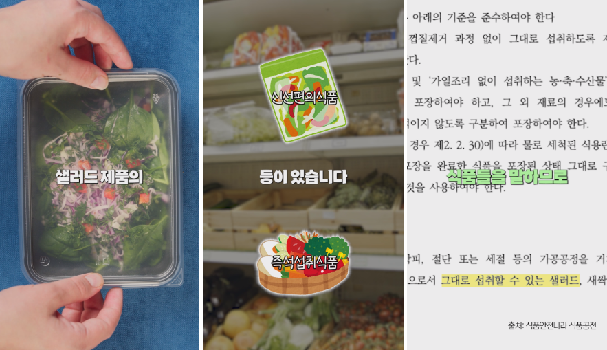 샐러드 제품을 구매할 때는 샐러드 제품 포장지에 적힌 식품 유형과 세척 문구 확인하는 것 꼭 잊지 않으시길 바랍니다.