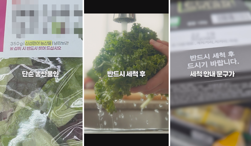 단순 농산물인 경우 반드시 세척 후 섭취해야 하기 때문에 샐러드 제품을 구매했을 때 식품 유형과 함께 세척 안내 문구가 있는지를 꼭 확인하는 것이 좋다고 합니다.
