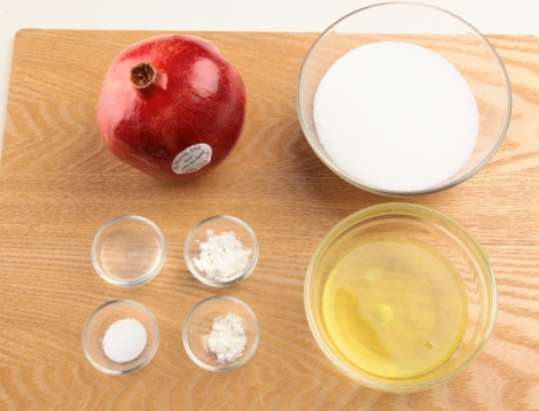 석류 1개, 달걀 흰자 4개, 설탕 200g, 레몬즙 1작은술, 소금 2g, 베이킹파우더 2g, 전분 2g