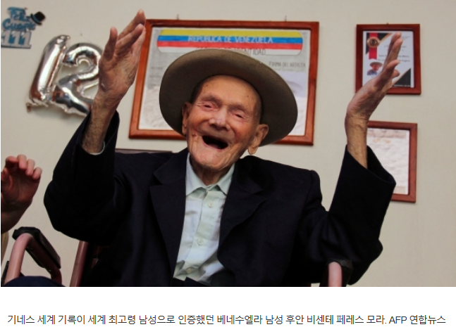 기네스 세계기록(GWR)이 세계 최고령 남성으로 인증한 베네수엘라의 농부후안 비센테 페레스 모라가 114세를 일기로 세상을 떠났다고 합니다.