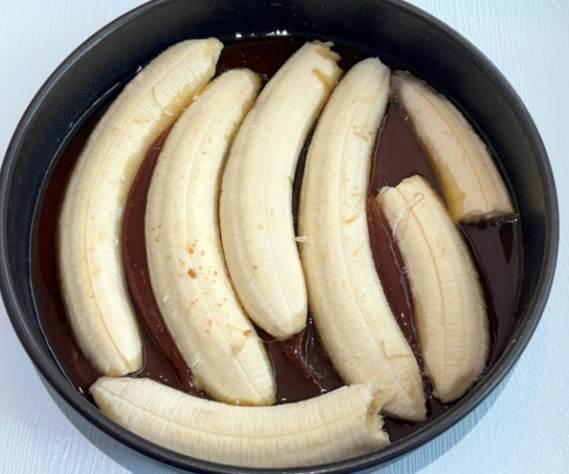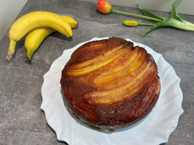 그래서 오늘은 바나나를 활용한 케이크 만드는 방법을 소개해 드리겠습니다. 일명 '단짠(달고 짠)' 맛을 내는 '솔티드 카라멜 바나나케이크'입니다. 수제 카라멜에 바나나를 올린 뒤 케이크 반죽을 덮어 구운 후, 뒤집으면 완성됩니다.
