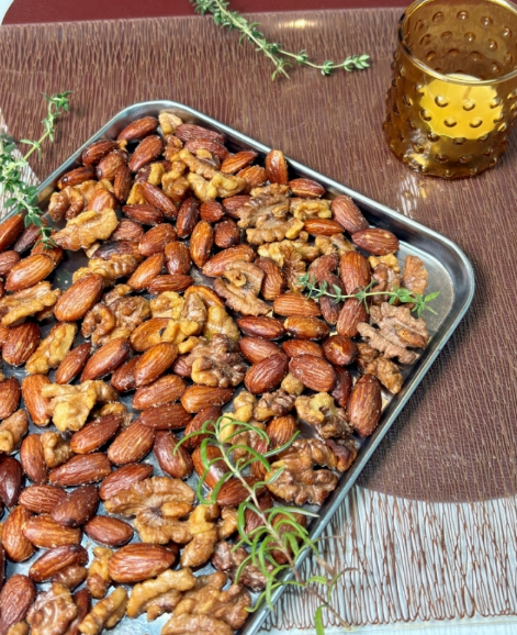 그래서 오늘 소개해 드리는 레시피는 '스파이스드 너츠'로 견과류에 로즈마리, 타임 잎 등의 허브와 큐민가루, 카이엔페퍼 등을 넣은 간식을 만들어 보겠습니다. 향긋하면서도 감칠맛이 더해진 견과를 즐겨보시길 바랍니다.
