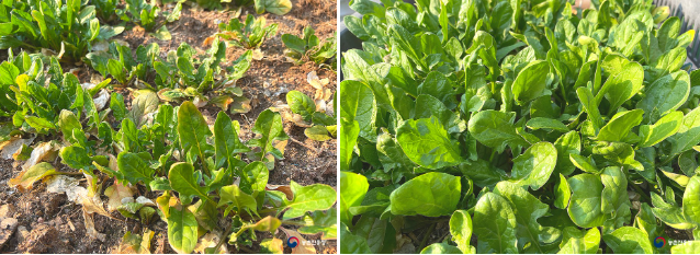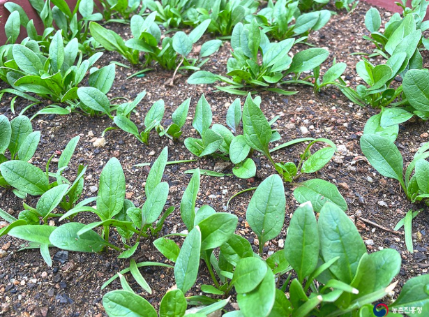 30일이 지나면 수확해도 될 만큼 무럭무럭 자란 것을 확인할 수 있습니다. 이때 빼곡하게 자란 시금치들을 솎아주면 더 잘 자란다고 합니다.
