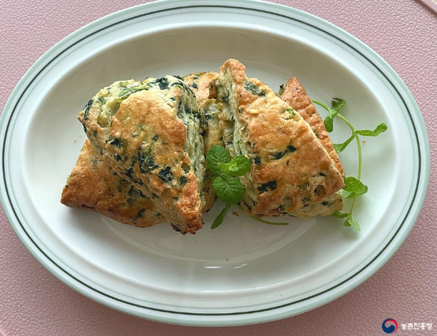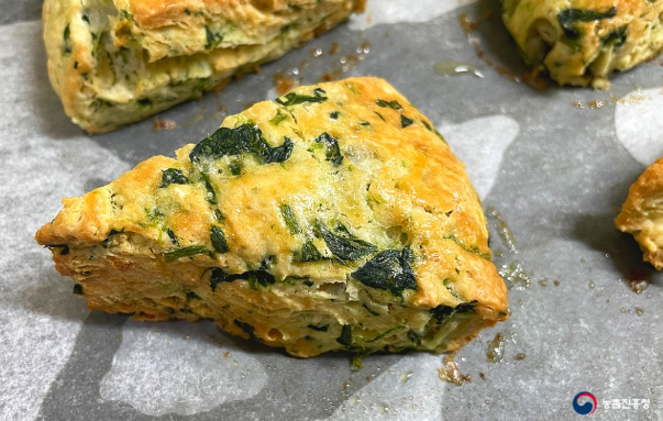 7. 노릇노릇 겉은 바삭하고 속은 촉촉한 시금치 스콘이 완성되었습니다.