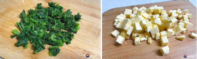 1. 데쳐둔 시금치 20g을 다져줍니다. 버터 90g도 잘게 썰어줍니다.