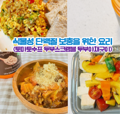 식물성 단백질 보충을 위한 요리(토마토수프·두부스크램블·두부야채구이)