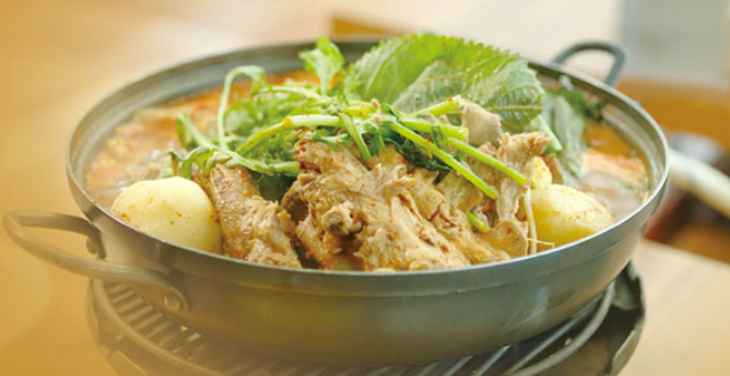 감자탕의 '감자'는 채소 감자를 말하는 게 아니라고 합니다. 돼지등뼈를 가리키는 말입니다. 이를 다소 까칠하게 설명한 구대명은 감자를 크게 한입 베어 뭅니다. 역시 뼈를 들고 뜯어먹는 것이 제맛입니다. 뼈를 쪽 빨면 고소한 것도 나오는데 그것 또한 먹는 재미를 더합니다.