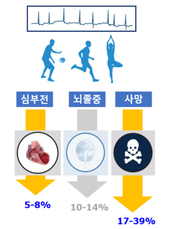 최의근 교수(순환기내과)는 "운동과 같은 생활습관 교정이 심박세동으로 진단받은 환자의 심부전, 사망 위험 감소와 연관이 있고 뇌졸중 위험 감소와도 잠재적으로 관련될 수 있음을 밝혔다"고 연구 의의를 설명했다고 합니다. 또, 그는 이어 "이 결과를 토대로 심방세동을 진단받은 환자들에게 심박 수가 빨라질 수 있는 운동을 시작하거나 지속하도록 권할 수 있는 과학적인 근거를 마련했다는 점에서 의미가 크다"라고 강조했다고 합니다.