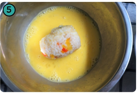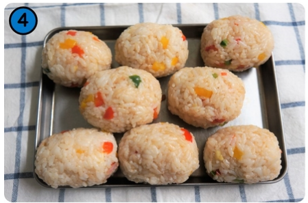 4. 밥에 소시지와 치즈를 넣고 동그랗게 만들어 줍니다.