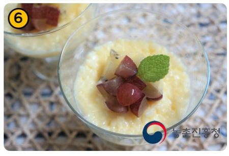 6. 차갑게 식은 쌀푸딩에 과일을 올려줍니다.