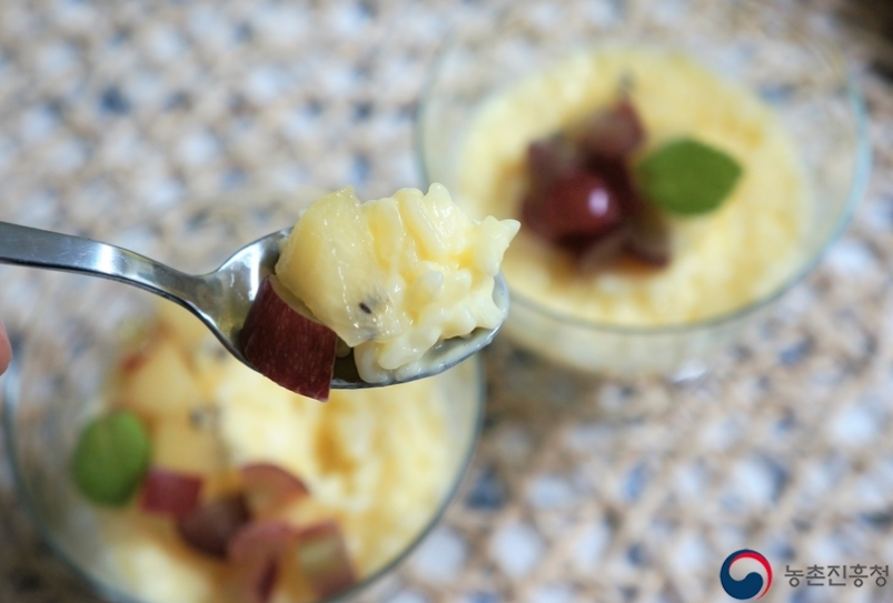 쌀푸딩은 만들기 간편해 아이들에게 자주 만들어 줄 것 같습니다. 제철 과일을 적절히 바꿔가며 토핑으로 올려주면 더 좋을 것 같습니다.
