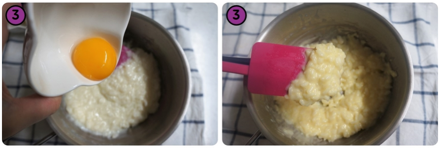3. 불을 끄고 버터, 달걀 노른자를 넣고 섞어줍니다.