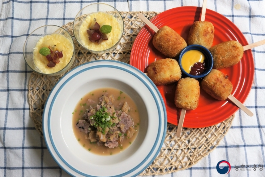 쌀 레시피 3가지(쌀푸딩·밥도그·황태된장누룽지죽)