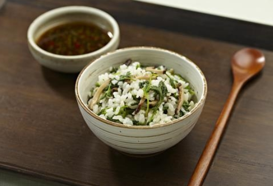 별다른 반찬 없이 쑥밥을 즐기고 싶을 때는 양념장을 섞어주면 좋습니다. 홍·청고추, 간장, 참기름 등으로 만든 양념장을 곁들여 냅니다.