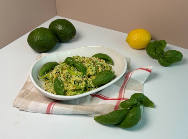 그래서 오늘은 '아보카도 페스토'를 이용한 애호박 국수 만드는 방법을 소개해 드리겠습니다. 아보카도 페스토는 한식의 국수 요리와도 조합이 좋다고 합니다. 오늘 소개해 드리는 아보카도 페스토 애호박 국수는 밀가루 국수가 들어가지 않아 건강에 더욱 좋습니다. 또, 부드러운 맛과 질감이 국수의 담백함과 잘 어우러집니다.
