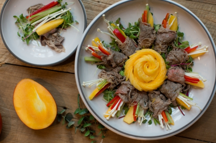 이번 추석 명절 리얼푸드에서는 담백한 음식 '애플망고 소고기 냉채'를 소개했습니다. 야채 곁들인 소고기 냉채는 담백하고 깔끔한 맛으로 다이어트식으로도 추천했습니다. 여기에 애플망고를 더하면 영양소 보충은 물론, 시각적으로도 더욱 보기 좋다고 합니다.