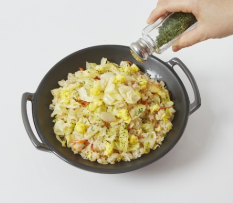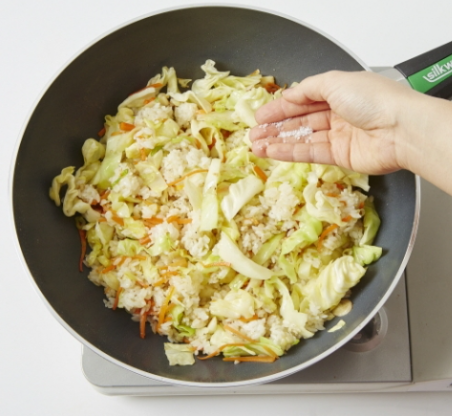 식감이 더해져 풍미가 올라가는데, 양배추를 싫어하는 아이들도 볶음밥에 넣으면 보다 쉽게 먹을 수 있습니다.