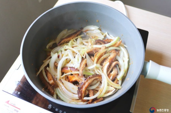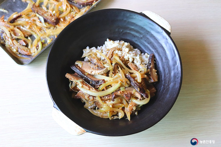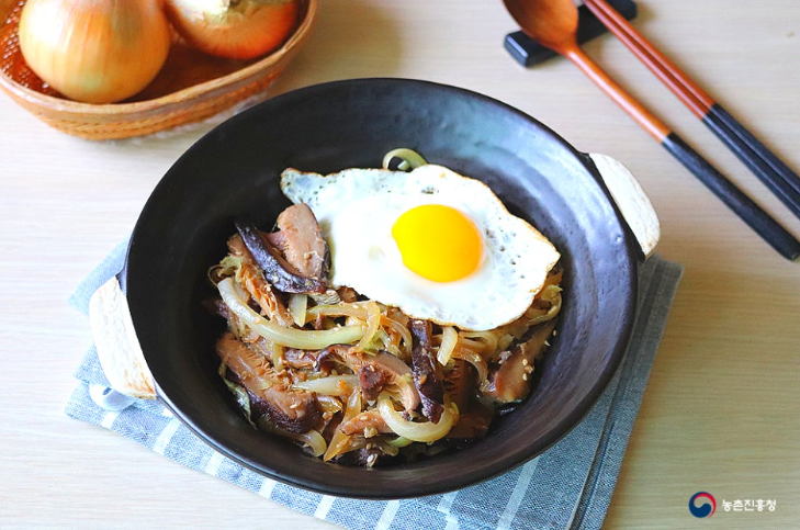 덥고 습한 날씨에 입맛이 뚝 떨어진 요즘, 가볍게 비벼 한 그릇 뚝딱할 수 있습니다. 양파를 맨 마지막에 조리해 아삭한 식감이 살아있어 더 맛있게 즐길 수 있습니다. 양파와 버섯에 든 영양성분을 고루 섭취할 수 있어 1인 가구를 위한 요리로도 안성맞춤입니다.