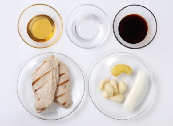 양파청소스 45g, 닭가슴살 2쪽, 소스(양파청 30g, 간장 30g, 마늘 15g, 생강 6g, 청주 15g, 대파 30g)