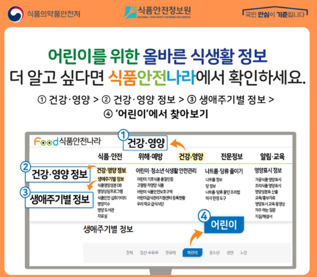 어린이를 위한 올바른 식생활 정보를 더 알고 싶다면 식품안전나라에서 확인하면 됩니다.
