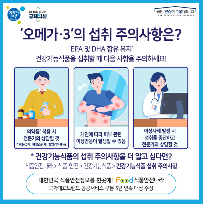 'EPA 및 DHA 함유 유지' 건강기능식품을 섭취할 때 다음 사항을 주의해야 합니다.
