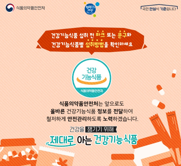 건강기능식품 섭취 전 마크, 또는 문구와 식품별 섭취방법을 꼭 확인하세요!