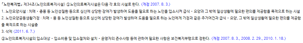 요양원은 통상적으로 노인복지법에 따라 지정받은 "노인요양시설", "노인요양공동생활가정"을 일컫는 말이라고 합니다. "노인요양시설", "노인요양공동생활가정"은 장기요양보험법에 따라 시설급여를 인정받은 수급자들만 입소가 가능하다고 합니다.