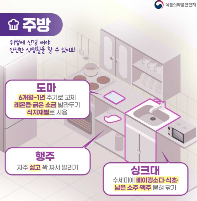 6개월~1년 주기로 교체하며 레몬즙 혹은 굵은소금을 발라둡니다. 또한 식자재별로 사용해야 합니다.