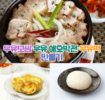 우유자조금관리위원회가 소개한 국산 우유 활용 레시피는 우유 보쌈과 우유 애호박전, 그리고 우유떡입니다.