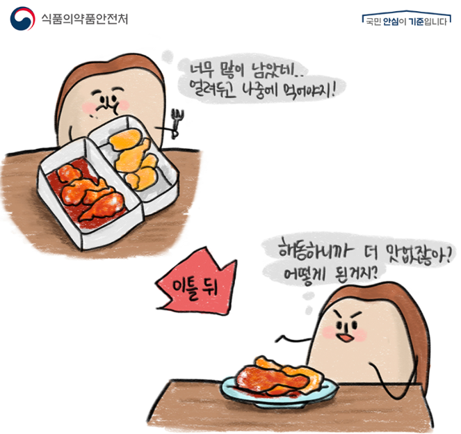 이미 해동한 식품은 해동 후에 바로 먹는 것이 좋고, 남은 것은 냉장보관하며 빠른 시일 안에 섭취해야 합니다. 냉동하려고 하는 식품은 한 번에 먹을 양만큼 소분하여 밀봉해서 넣는 게 좋습니다.