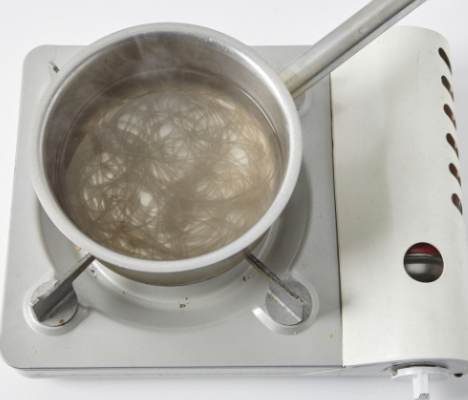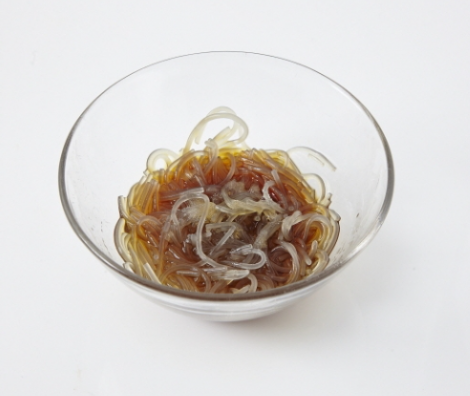 1. 당면은 끓는 물에 너고 5분간 삶아 헹군 뒤 물기를 빼고 잘게 잘라 밑간에 버무립니다.