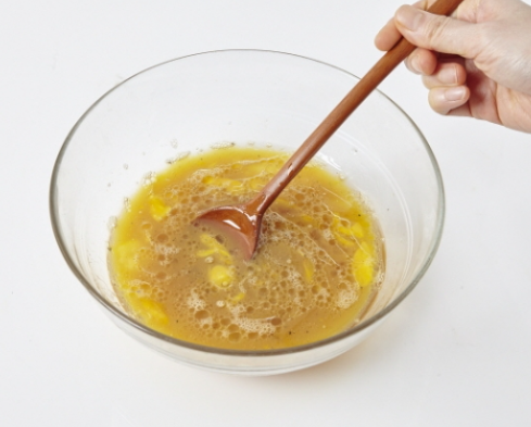 3. 볼에 달걀을 깨 넣고 양념을 넣고 간합니다.