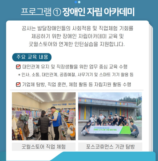 첫 번째 프로그램으로는 장애인 자립 아카데미가 있습니다.