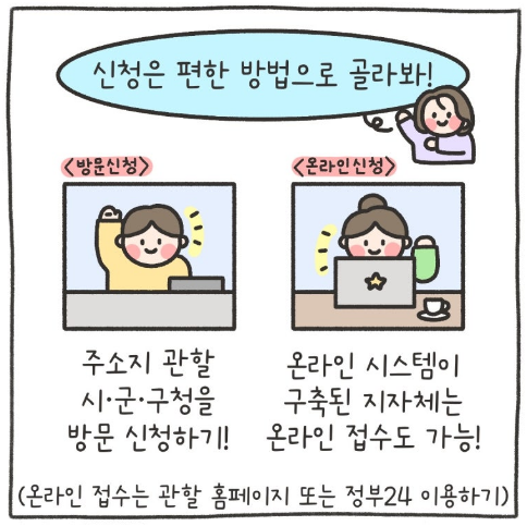 주소지 관할 시·군·구청을 방문 후 신청서 작성 및 제출을 합니다.