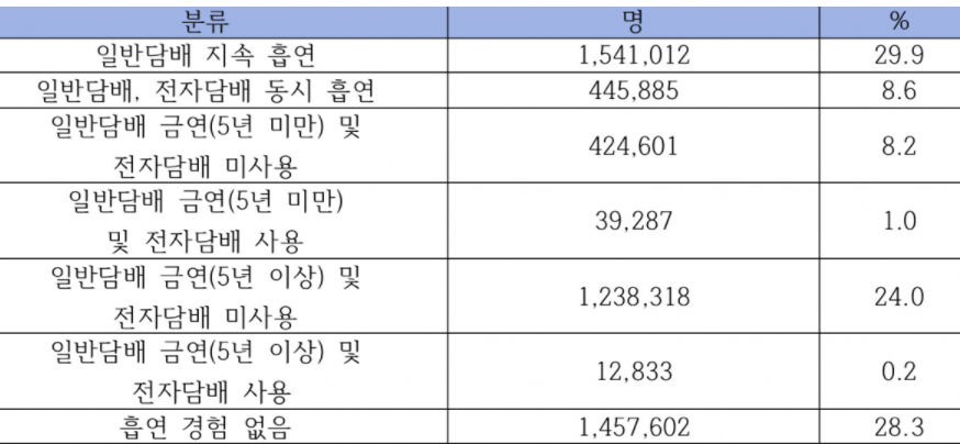 2014년~2015년 첫 번째 조사에서는 대상들을 일반담배 흡연 경험이 없는 그룹, 금연한 그룹, 흡연자 그룹으로 나누었고, 2018년 조사에서는 전자담배 사용 여부를 추가적으로 파악했다고 합니다.