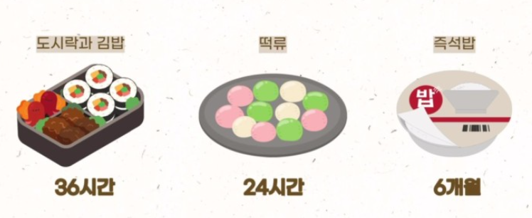 도시락과 김밥은 36시간, 떡류는 하루인 것에 비해 즉석밥은 유통기한이 6개월이나 됩니다.
