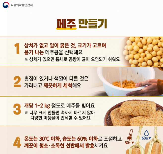 메주와 된장 만들 때 아플라톡신 조심!