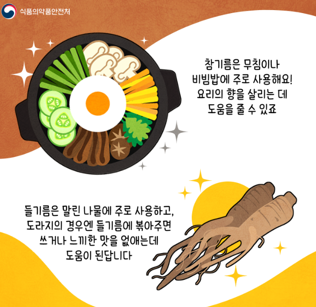 외식이나 배달음식으로 식비 지출이 많아진 요즘, 집밥을 준비하려는 분들이 많이 계실 것입니다. 그런데, 요리를 하면서 참기름과 들기름 중 어떤 것을 사용해야 할지 잘 모르는 상황이 올 때가 많습니다. 참기름과 들기름의 사용법을 살펴보겠습니다.