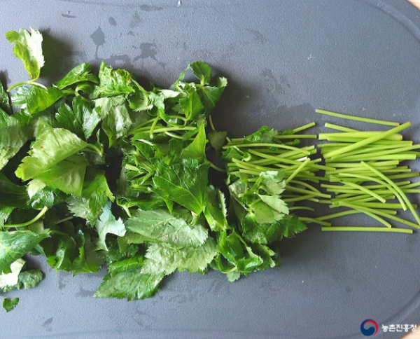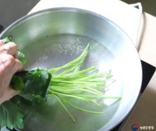 손질은 어떻게 해야 할까요? 끓는 물에 소금을 조금 넣고 데쳐 사용하면 됩니다. 줄기 부분이 질기기 때문에 줄기 먼저 세워 데친 뒤, 10~15초 후 잎 부분을 마저 넣고 데쳐줍니다.