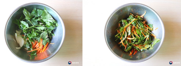 6. 손질해 둔 참나물과 양파, 당근을 모두 넣고 양념장에 고루 버무려줍니다.