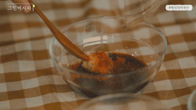 다음은 국수의 맛을 좌우하는 양념장을 만들어 보겠습니다.