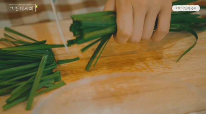 2. 국수에 함께 들어갈 부추나물을 만듭니다.