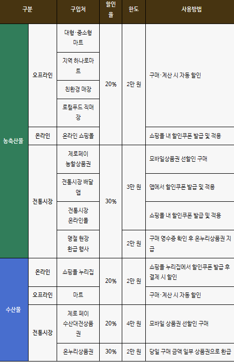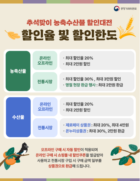 추석맞이 농축수산물 할인대전 할인율 및 할인한도