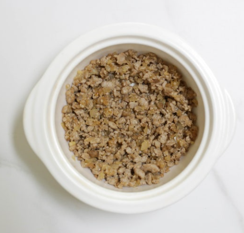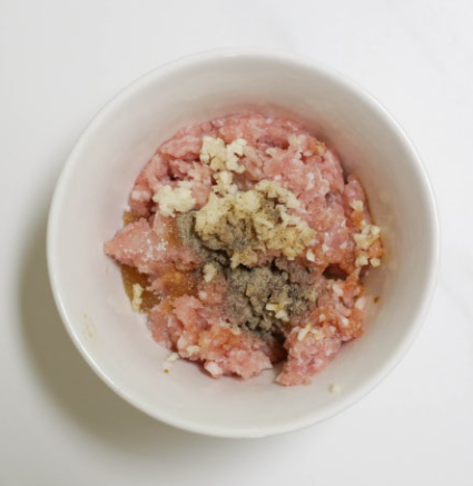 2. 핏물을 제거한 돼지고기 다짐육에 분량의 고기 양념을 넣고 잘 섞어줍니다.
