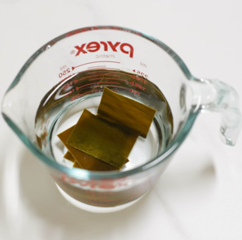 6. 1시간 정도 찬물에 다시마를 넣고 우려낸 다시마물을 준비합니다.