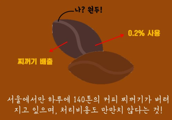 증가하는 커피 소비량에 따라 커피 찌꺼기도 함께 증가하며 처리비용에도 만만치 않습니다. 커피의 향과 맛으로 입과 마음을 즐겁게 했다면 키피 찌꺼기로 생활을 더욱 알차게 만드는 것도 좋은 방법입니다.