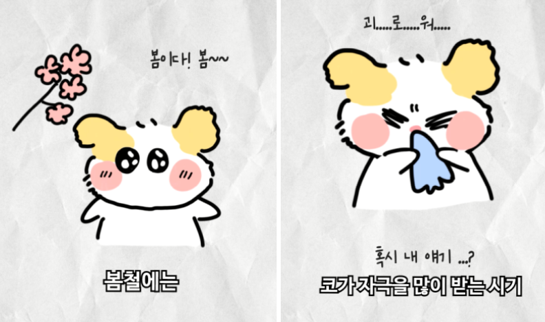 봄철에는 알레르기와 큰 일교차로 인해 코가 자극을 많이 받는 시기입니다.
