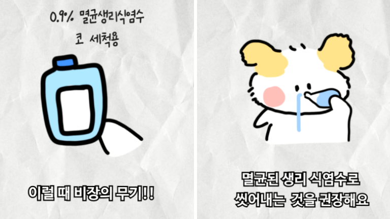 이때 코를 자주 만지거나, 과하게 풀면 부담을 줄 수 있어 주의해야 한다고 합니다.