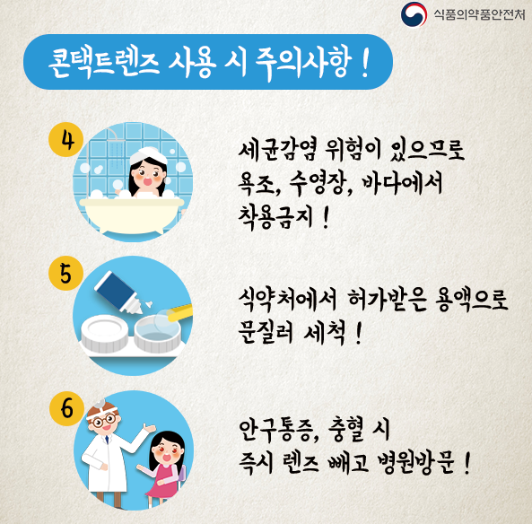 콘택트렌즈는 착용 시 각막에 직접 닿는 것으로, 렌즈 선택과 처방이 잘못되거나 관리 소홀 시 눈에 통증, 충혈, 각막염 등 부작용을 겪을 수 있는 만큼 사용 시 주의해야 합니다.